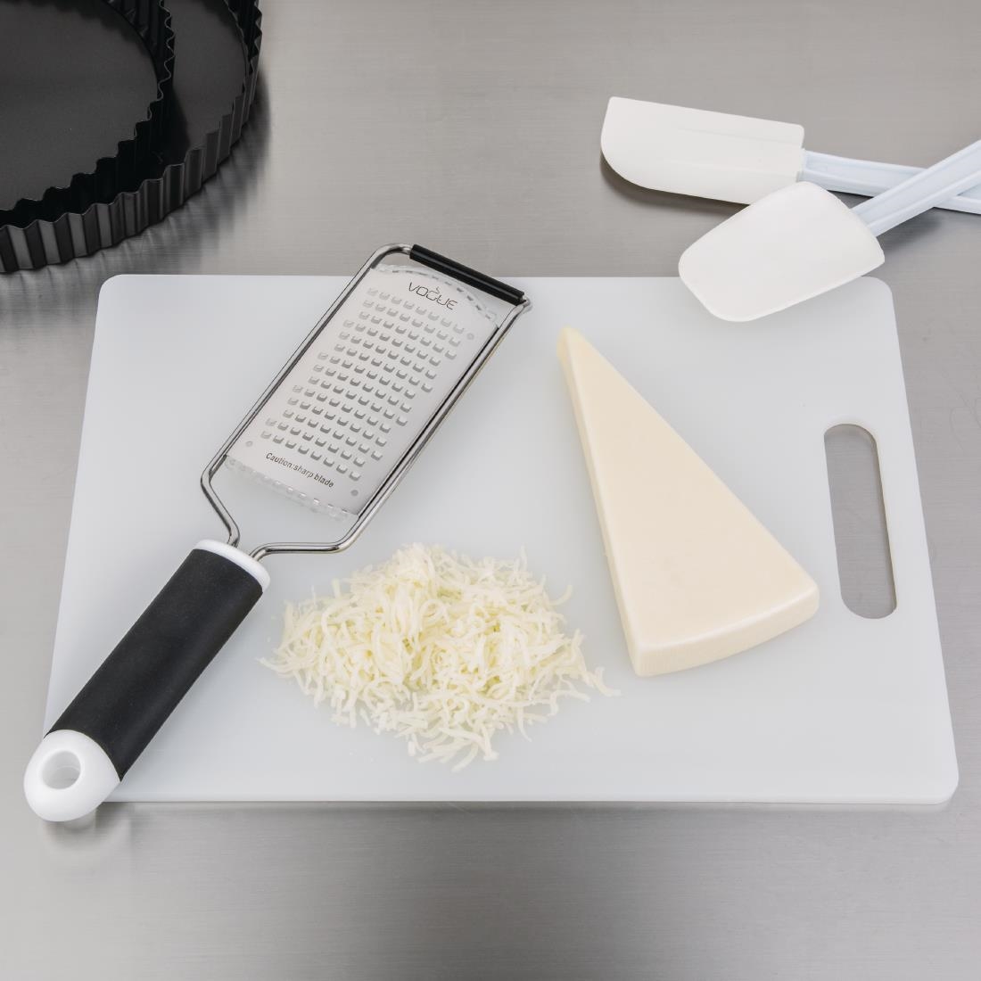 Effortlessly add extra flavour to your dishes with the Vogue narrow blade medium grater. Constructed from premium quality stainless steel, the grater produces medium shreds with ease, helping create unique textures and reducing your preparation times. Made with a polypropylene handle, the grater is also incredibly comfortable in the hand to allow you to grate for longer. Robust, reliable and sturdy, this grater will easily shred everything from cheese to carrot.