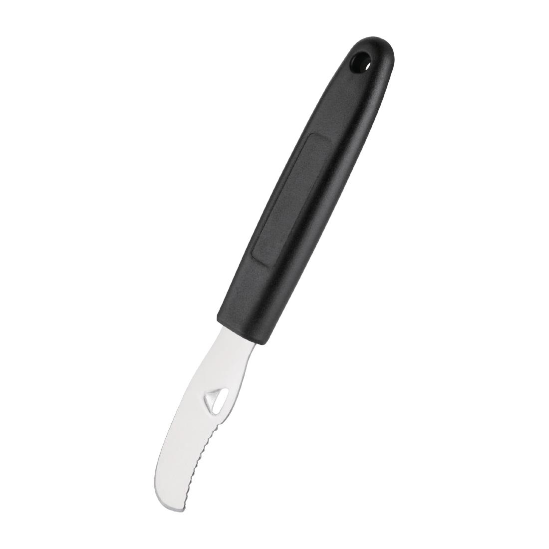 Prepare oranges safely and efficiently with the Vogue orange peeler. Boasting a high quality stainless steel blade, the peeler offers a swift, clean cut to guarantee quicker, mess-free preparation. The blade’s curved design also enables it to glide around any shape to help you effortlessly peel oranges. A polypropylene handle gives the user a secure yet comfortable grip, ensuring your safety when preparing ingredients.
