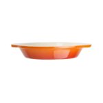 A traditional round shaped cast iron gratin dish with ears on each side for easy carrying. This dish has excellent heat retaining properties and provides even heat distribution for a great cook every time. This attractive orange dish is ideal for oven to table use, perfect for serving a variety of delicious dishes.