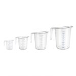 - Clear markings with cups/oz markings on one side and ml/ltr on other