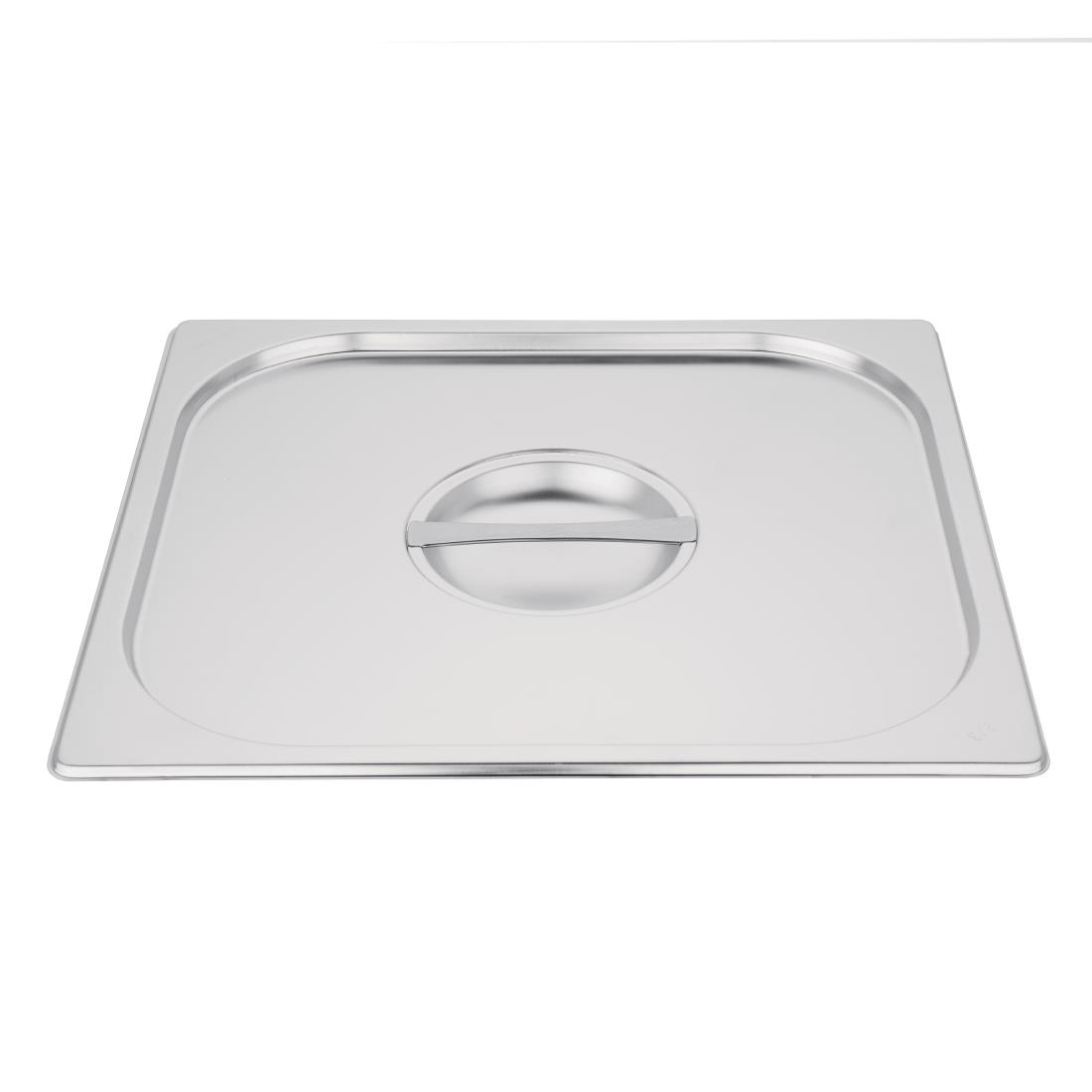 Cover your gastronorm pans, with this Vogue stainless steel 2/3 gastronorm lid. Keeping your pans covered is an excellent way to keep food warmer for longer and free from contamination, which cuts down on your levels of waste. Constructed from high-quality stainless steel, this gastronorm lid is immensely durable for a long-lasting life in your kitchen, saving you money on buying replacements. The handle on top is situated in a recess, keeping it away from any heat and preventing you from burning yourself on the hot metal. Designed to fit 2/3 Vogue gastronorm pans, this gastronorm lid is a very useful addition for your kitchen. Supplied by professional catering brand Vogue, you can ensure this is a top-quality piece of food storage equipment.