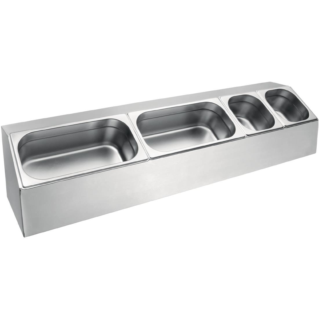 Store and present your gastronorm trays, with this long gastronorm pan rack from Vogue.This rack is perfect for presenting food on a buffet, or for preparing food at preparation station in the kitchen. Constructed from strong stainless steel, the rack is very robust and durable, enabling it to stand up to many years of heavy duty usage and therefore limit your need to buy replacements. The smooth stainless steel is also very easy to clean. This rack fits three 1/3 GN pans or six 1/6 pans depending on your desired configuration. This rack is a top quality piece of food storage equipment from leading brand Vogue.