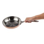 The 240mm Vogue Tri Wall Copper Frying Pan is the perfect frying pan for quickly and evenly cooking food, whether that’s eggs, vegetables or fish. The tri wall construction consists of stainless steel, aluminium and copper layers, all working together to create a frying pan with superior heat conductivity that is evenly spread across the pan, helping you to cook food to perfection with ease. The stay-cool handle ensures your hands are kept cool, allowing you to stir the contents and move the pan as you wish.The pan is also suitable for use with induction cooktops -perfect for saving energy and reducing your running costs.