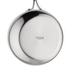This sauté pan is part of the premium Tri- Wall range from Vogue, and aids in improving the process of any sautéing task. The pan features an aluminium thermocore that has been sandwiched between stainless steel walls – providing you with great cooking results every time. The aluminium centre will ensure even heat conduction and distribution without hot-spots, making it ideal for all manner of cooking purposes. This material also provides excellent resistance to impact, rust or corrosion and is easy to clean after use – helping to save you both money and time. Features an ergonomic handle that allows you to transport and serve food in comfort. Lids are available sold separately.