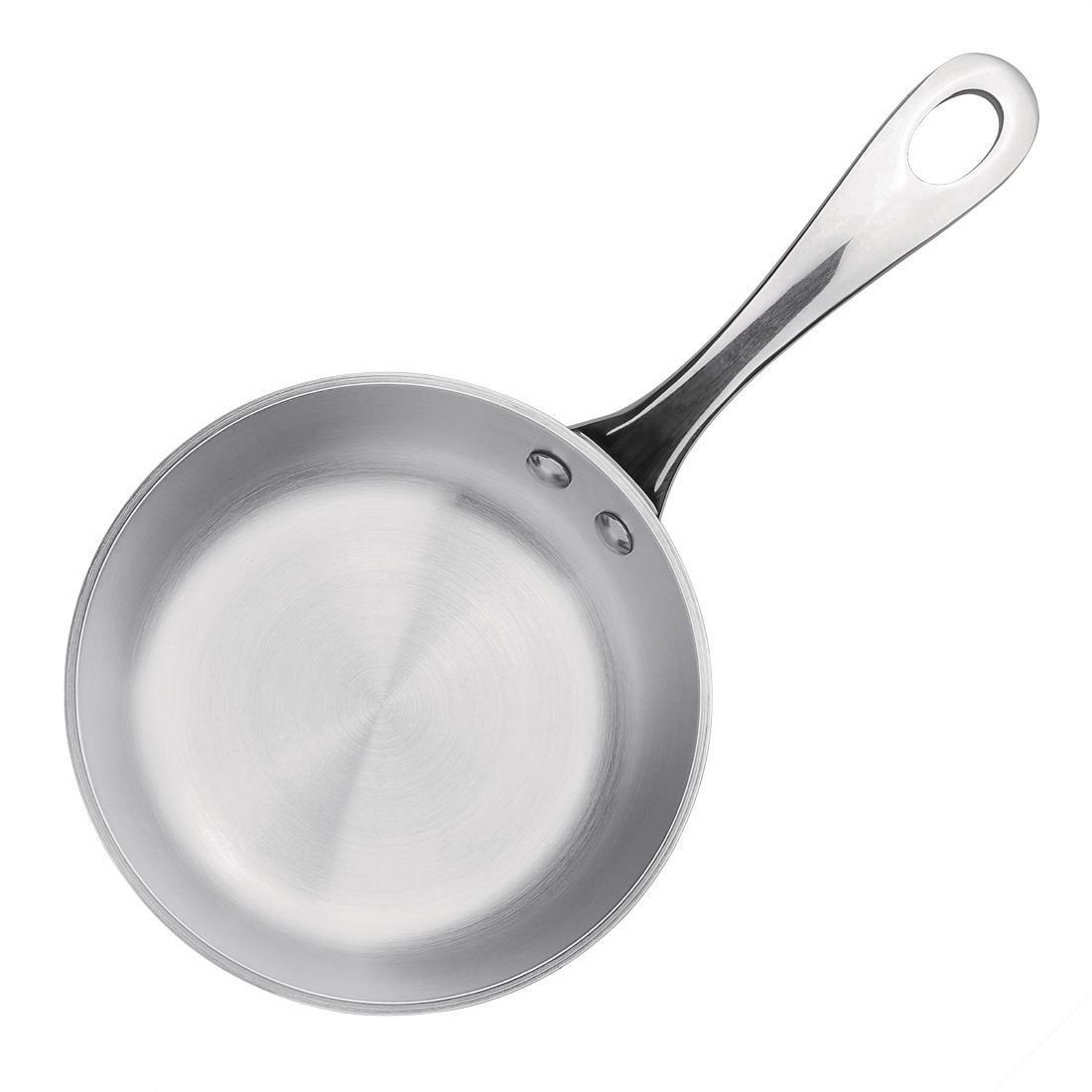 Frying eggs or pancakes? Using this mini frying pan from Vogue will guarantee flawless presentation and the finest cooking results every time. The secret to the pan’s success lies in its innovative tri-wall design – an aluminium thermocore sandwiched between stainless steel walls. This eliminates hot spots to ensure even heat distribution throughout – so you can achieve consistent cooking results time and time again! The pan’s base is suitable for all types of cooking including induction, while a strong and sturdy handle makes it easy to lift or carry.The stainless steel and aluminium construction makes this frying pan dishwasher safe too, so keeping it in pristine condition has never been easier.
