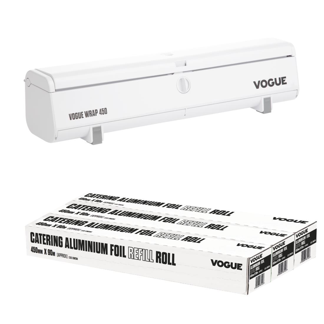With 90 metres of foil on each of the three rolls, the refill pack contains plenty of kitchen foil to ensure that you can continue lining trays and wrapping food with ease. As such, you’ll save yourself money and hassle by using the Vogue Wrap 450 dispenser bundle.