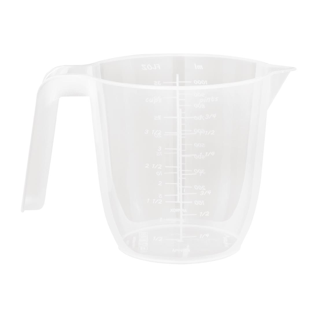 Measure, pour and store with the 1 litre Wham Cuisine polypropylene measuring jug. Ideal for storing in the fridge or freezer, the jug makes it simple and mess-free to dispense liquids, thanks to its large ergonomic handle and specially-designed pouring spout. The highly durable construction also makes the jug perfect for use in microwaves too, so you can quickly defrost or reheat contents without having to change container.For further convenience, the measuring jug is dishwasher safe – helping to save time cleaning up once it’s empty. And once it’s clean, you can stack multiple jugs together, saving storage space.
