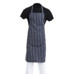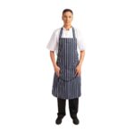 Whites Butchers Apron Navy Stripe with Pocket