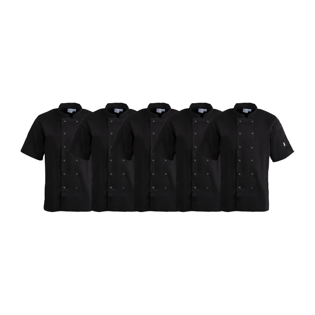 - Short-sleeved for improved air circulation to keep staff cool