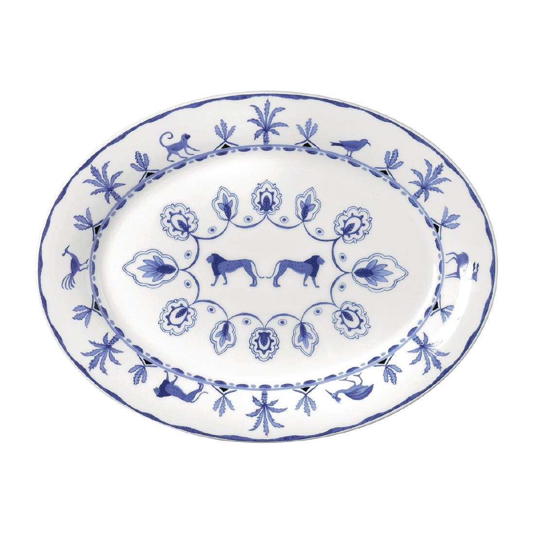 Hand-decorated in Stoke-on-Trent, these oval trays are part of William Edwards ever-popular Sultan’s Garden collection. They feature deep blue patterns of exotic wildlife and paradisical gardens and are crafted from white bone china.