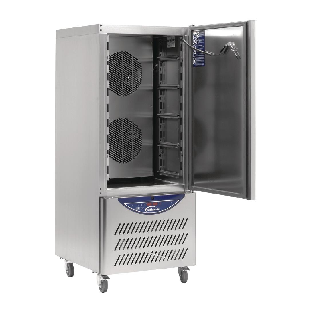 Eliminate the hazards of conventional slow cooling with the Williams WBCF40 Blast Chiller Freezer. Designed to give you complete control, the Williams shock freezer uses innovative AirSmart technology which helps maintain the food in the very best possible condition, retaining taste, aroma, texture and appearance. This blast chiller is so powerful that it beats current food safety legislation – able to reduce temperatures from +90°C to +3°C in 90 minutes or to -18°C in 240 minutes. Soft or hard chilling modes ensure delicate foods can be cooled without damage. Castor height: 128mm.