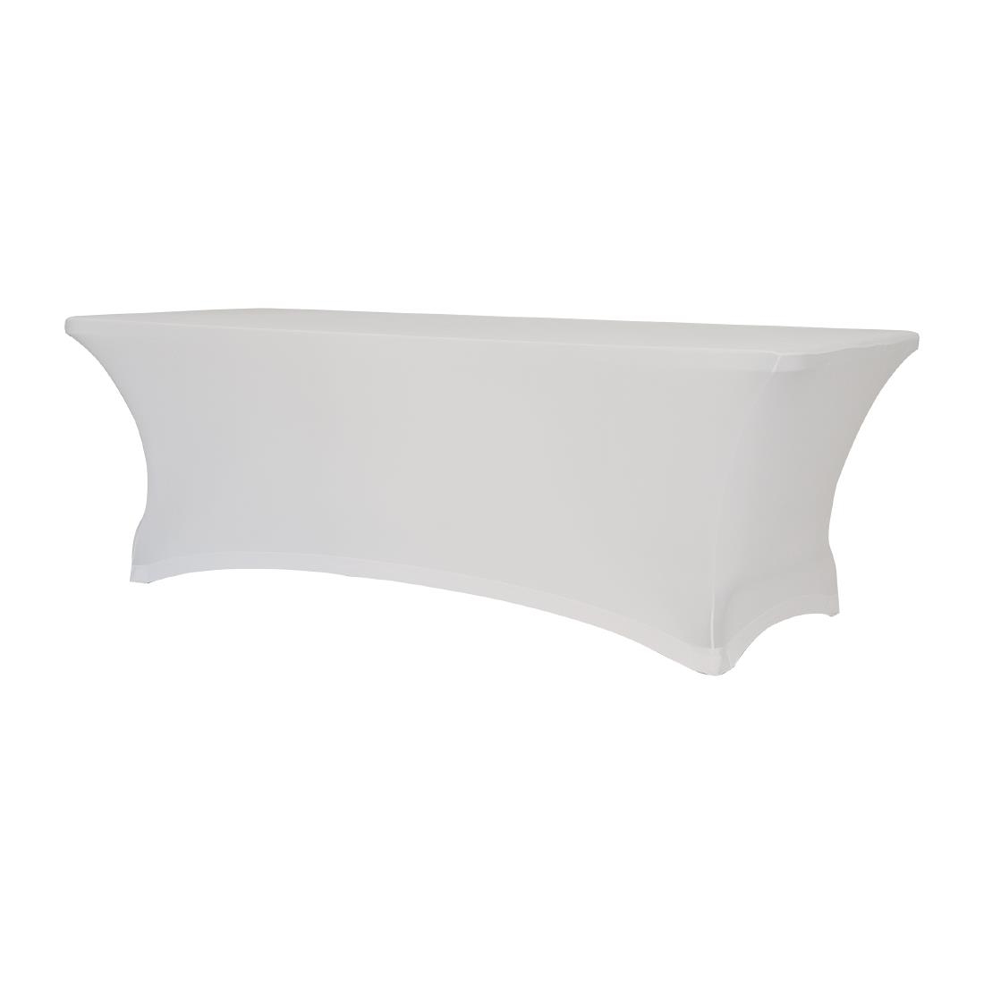 Add an element of style to your table settings, with this ZOWN white stretch cover for the XL240 table. This white stretch cover is constructed from 90% polyester and 10% lycra for a stretch fabric that is also very robust and durable. The stretch capability is particularly helpful for use outdoors, as it won’t be affected by the wind. There’s no ironing required with this brilliant elastic and ergonomic material. Easy to fit, simply stretch the cover over the table and save valuable fitting time. Adding covers to your tables is a simple way to acquire an element of style for your service and also protect your table tops from damage.