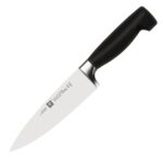 The Zwilling chefs knife from the Four Star series is ideal for chopping herbs and cutting meat, fish or vegetables. Made of 18/10 special formula stainless steel, this knife is built for longevity and thanks to its FRIODUR ice hardened blade, is exceptionally sharp. Its ergonomic handle allows for fatigue free working as well as optimum balance.