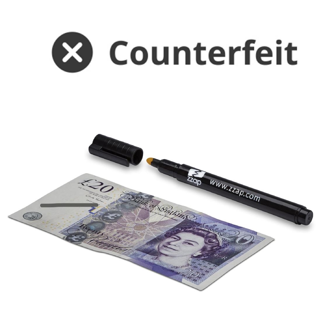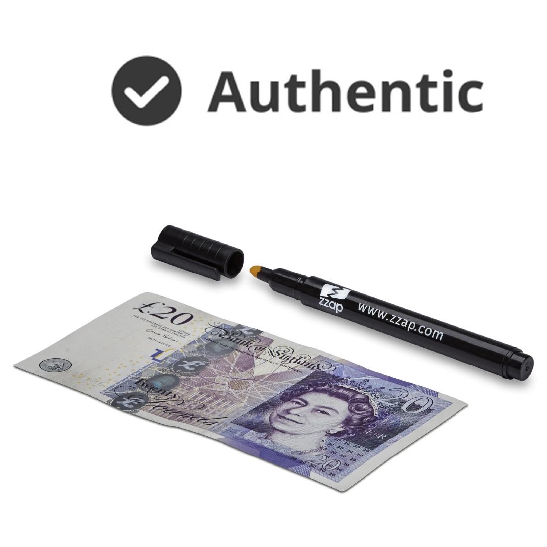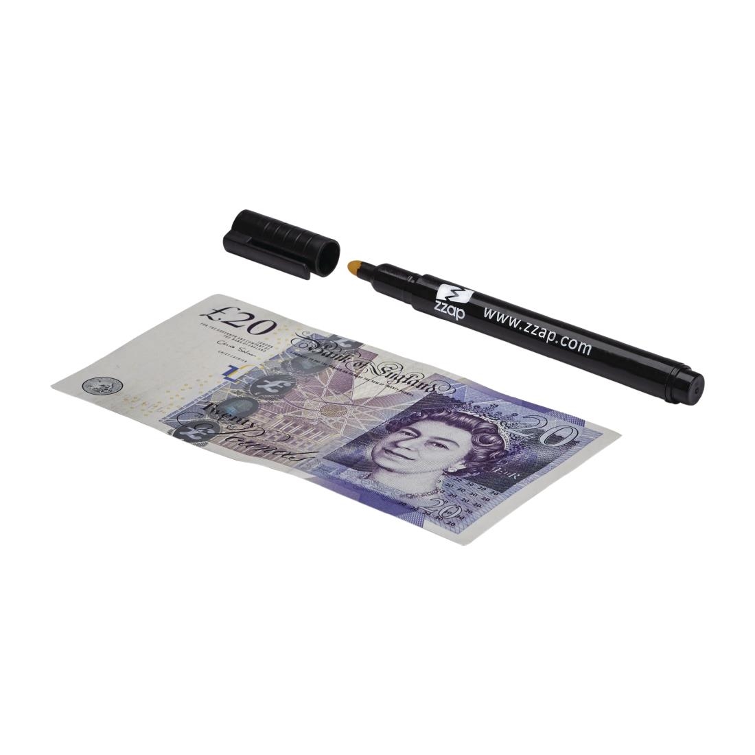 Firmly established as one of the most accurate counterfeit note detecting pens, the ZZap D1 instantly verifies the authenticity of almost all world bank notes. Using an intelligent iodine-based ink, the pen works by reacting with starch found in standard papers which are not found on genuine cotton or polymer based bank notes. If counterfeit, a highly visible black mark is left on the note. Due to the pen’s light weight and small size, it’s the perfect fraud prevention tool when mobile catering or at smaller sites where space is at a premium.